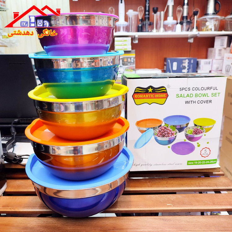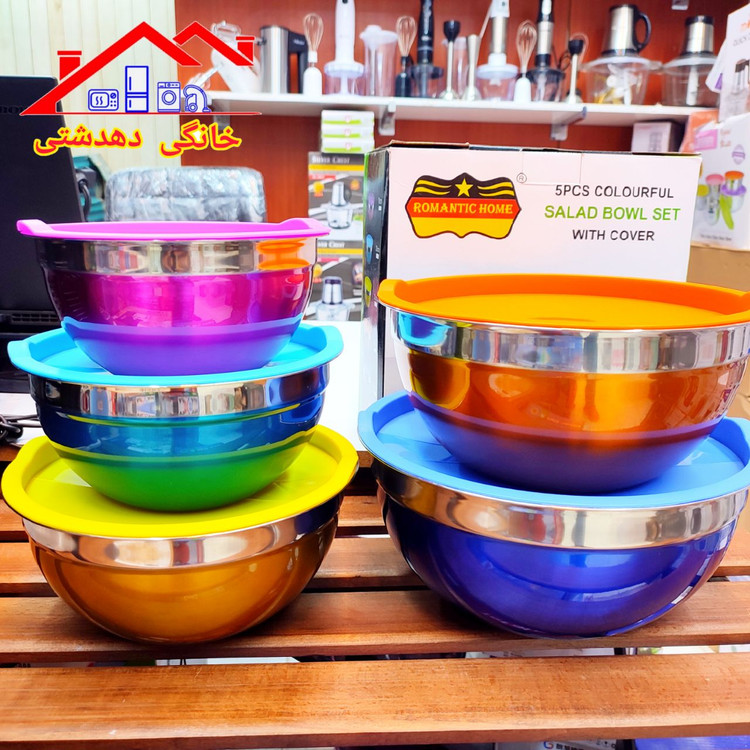 لگن یا کاسه ۵تیکه برند رومانتیک کیفیت عالی آهن ربا نگیر و کاملاضد زنگ غیر قابل شستشو در ماشین ظرفشویی