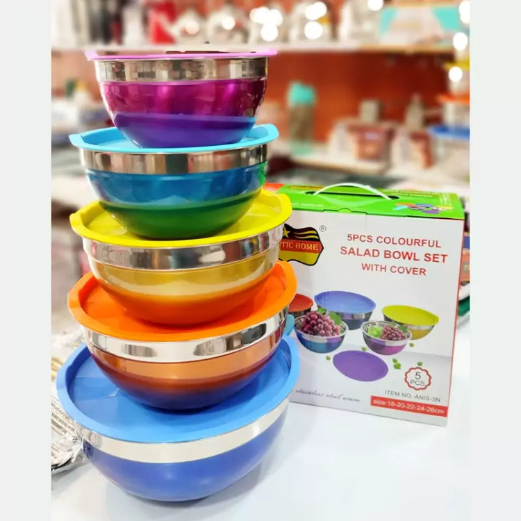 کاسه رنگی های درب دار 5تیکه برند رومانتیک هوم کیفیت درجه 1 آهنربا نگیر ضد زنگ رنگ ثابت جنس درب ژله ای و نرم نشکن از شستشو با ماشین ظرفشویی خوداری کنید