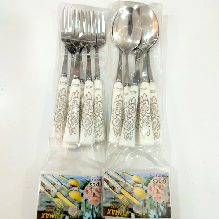 قاشق و چنگال دسته سرامیکی 6قاشق و 6چنگال با هم میاد قیمتی ک زده شده قیمت هر ست 6نفرست ک6قاشق و 6چنکال هست کاملا ضد زنگ و قابل استفاده داخل سرخ کن هست