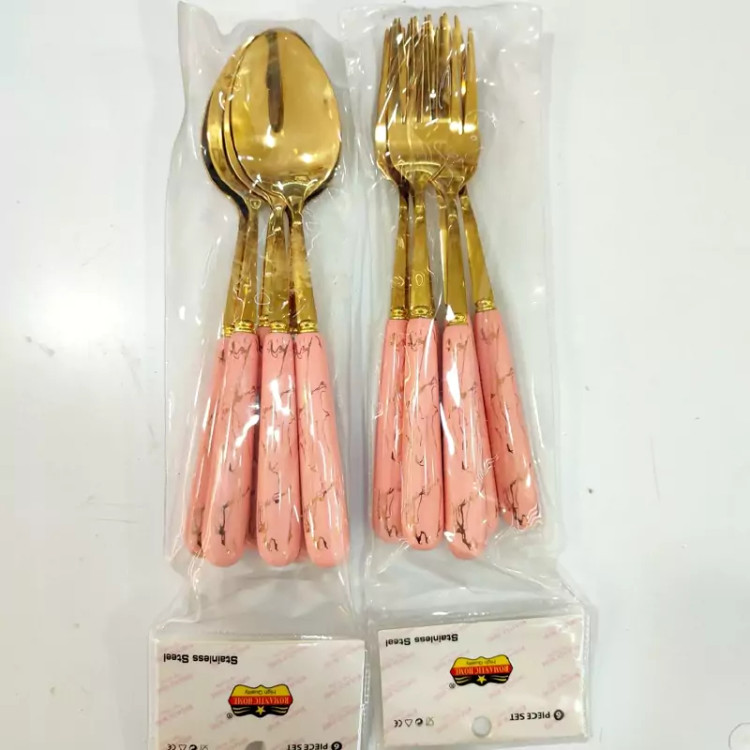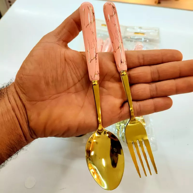 قاشق و چنگال دسته سرامیکی استیل طلایی کیفیت عالی واسه شستشو ماشین ظرفشویی ممنوع