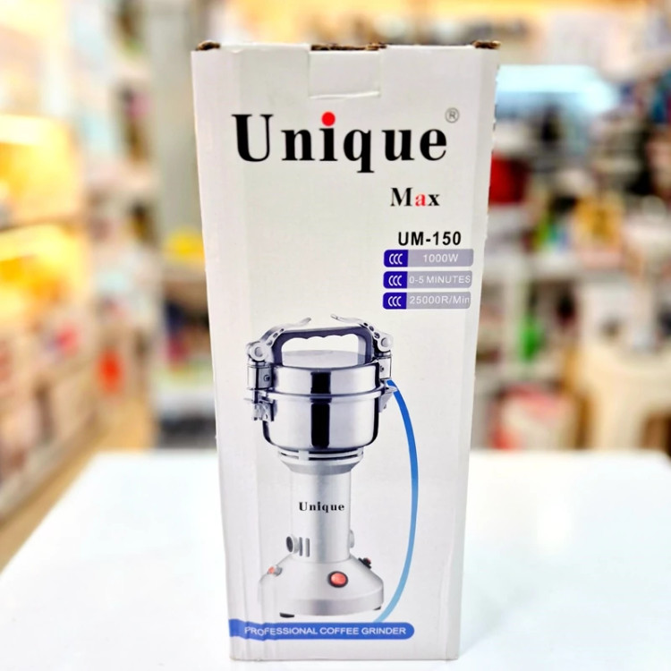آسیاب صنعتی برند یونیک 150گرمی کار فوق العاده عالی موتور بسیار قوی 1000وات توان دستگاست بسیار با کیفیت برای اسیاب انواع ادویه بخصوص چوب زردچوبه و زنجبیل عالیه